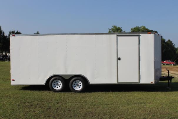 8.5x20 Enclosed Trailer- 20 FT Box Plus Additional V Nose Tandem 3500lb Axles. Includes ¾ Plywood Floors, 3/8 Plywood Walls, Side Entry Door, Roof Vent, 12 V Interior Dome Light, Rear Ramp Door, ATP Stone Guard, 2 5/16” Coupler, Electric Brakes &Breakaway on both axles, (4) Recessed D Ring Tie Downs ... |