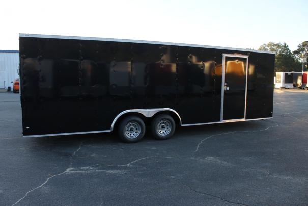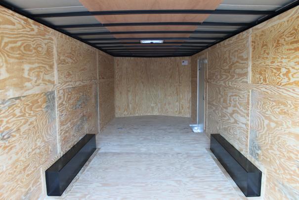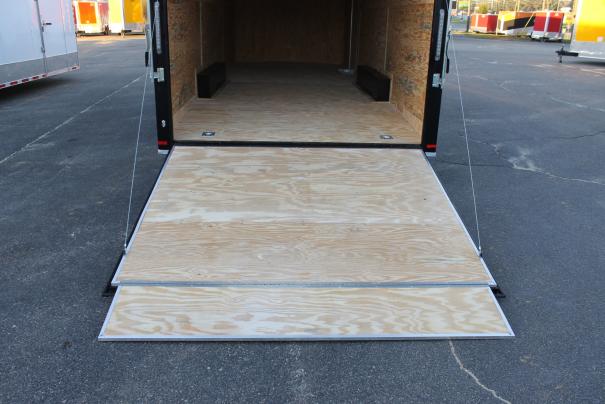 Trailer Has: 3/4 Plywood Floors, 3/8 Plywood Walls, 24" Stone Guard across the fron and up the center of the V-Nose, 36" Side entry door with flush mount locks, 4 - Recessed D-ring tie downs, Rear ramp with double spring assist and extension flap, LED Tail lights, Tandem 3500# Axles with electric brakes and brake aways on both axles. |