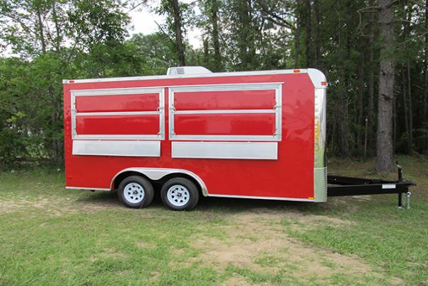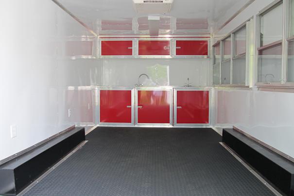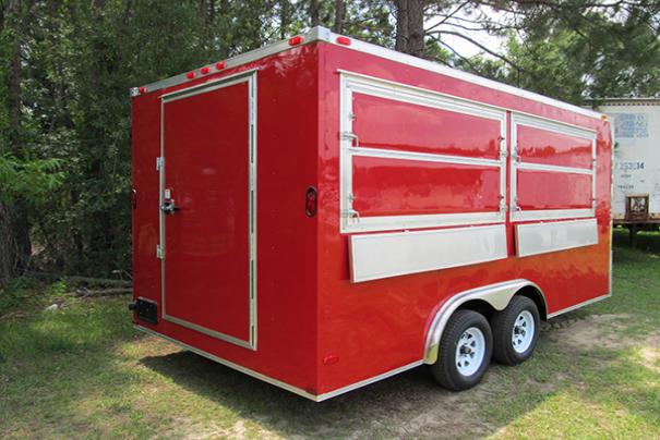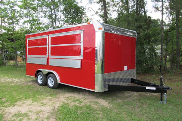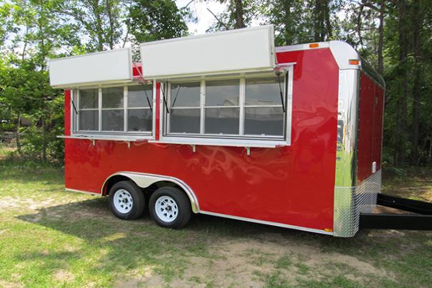 8x16 Concession Trailer: Insulated w/ White Metal Interior, Complete Electrical Package, Complete Water Package w/ (3) Sink System plus Handwashing Station. Base and Overhead Cabinets. Concession Serving Windows w/ Fold Down Counts and Marquees. Call for full details! |
