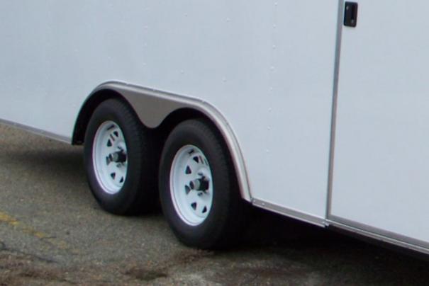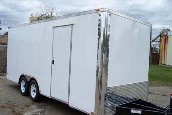 8.5x20 Enclosed Trailer- Flat Front w/ Tandem 3500lb Axles. Includes ¾ Plywood Floors, 3/8 Plywood Walls, Side Entry Door, Roof Vent, 12 V Interior Dome Light, Rear Ramp Door, ATP Stone Guard, 2 5/16” Coupler, Electric Brakes &Breakaway on both axles, (4) Recessed D Ring Tie Downs,Extended Tongue, Anodized Ftont Corners |