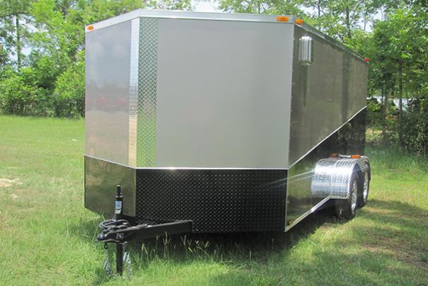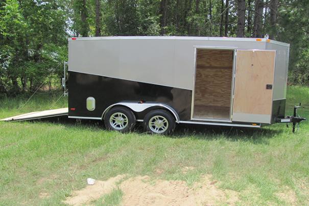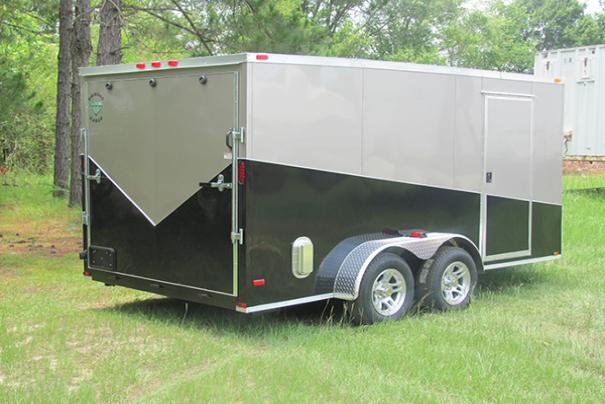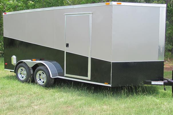 7x16 Enclosed Motorcycle Trailer. Tandem 3500lb Axles. Includes ¾ Plywood Floors, 3/8 Plywood Walls, Side Entry Door, Roof Vent, 12 V Interior Dome Light, Rear Ramp Door, ATP Stone Guard, 2 5/16” Coupler, Electric Brakes &Breakaway on both axles, Includes Motorcycle Package: 24” Anodized Surround, Stabilized Jacks, 6 recessed d-ring tie downs, flow through vents, Alloy wheels with radial tires. Two Tone can be your colors of choice. |