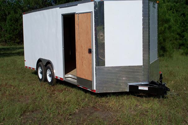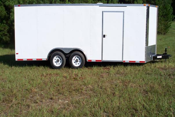 8.5x26 Enclosed Trailer- V-Nose w/ Tandem 5200lb Axles. Includes ¾ Plywood Floors, 3/8 Plywood Walls, Side Entry Door, Roof Vent, 12 V Interior Dome Light, Rear Ramp Door, ATP Stone Guard, 2 5/16” Coupler, Electric Brakes &Breakaway on both axles, (4) Recessed D Ring Tie Downs, Anodized Front Corners, All LED Light Package and Double Rear Tail lights |