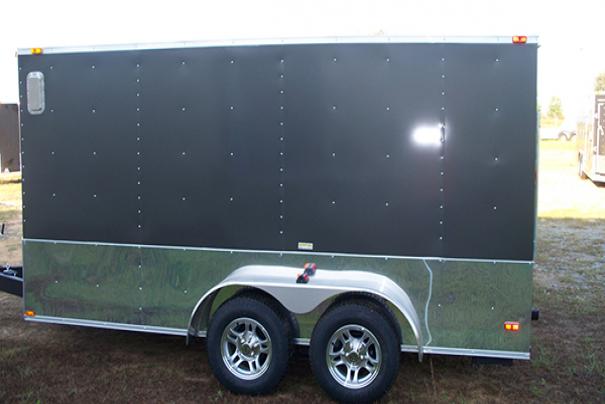 7x16 Enclosed Motorcycle Trailer. Tandem 3500lb Axles. Includes ¾ Plywood Floors, 3/8 Plywood Walls, Side Entry Door, Roof Vent, 12 V Interior Dome Light, Rear Ramp Door, ATP Stone Guard, 2 5/16” Coupler, Electric Brakes &Breakaway on both axles, Includes Motorcycle Package: 24” Anodized Surround, Stabilized Jacks, 6 recessed d-ring tie downs, flow through vents, Alloy wheels with radial tires |